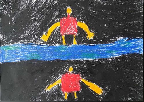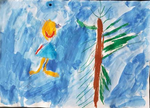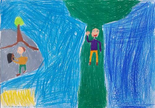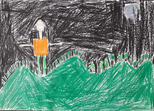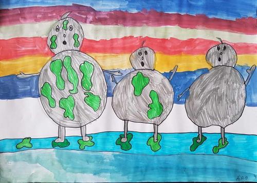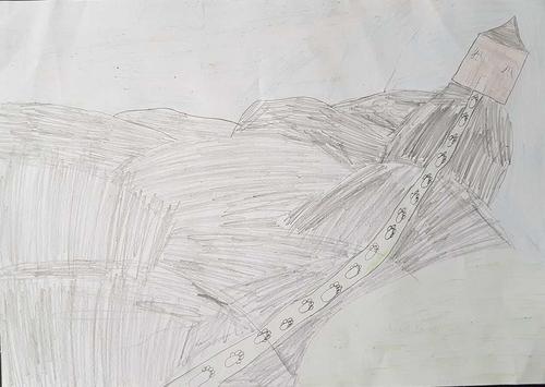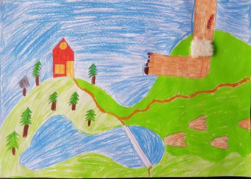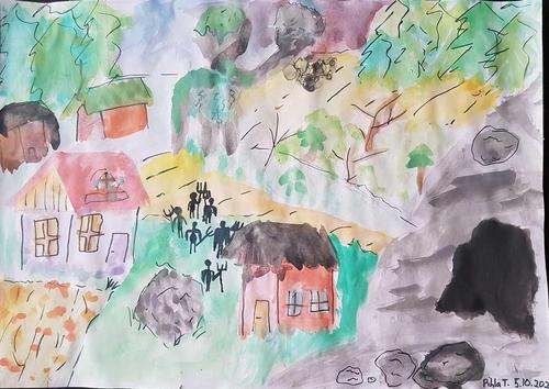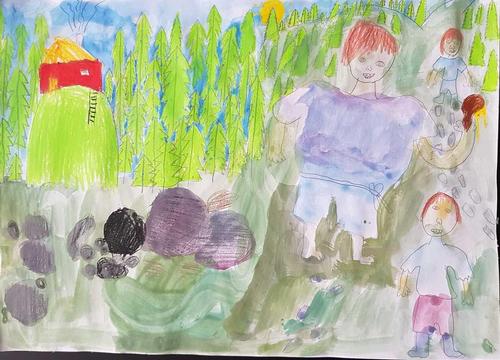Kuvat ovat Kerimäen koulun oppilaiden jättiläisaiheisia teoksia.