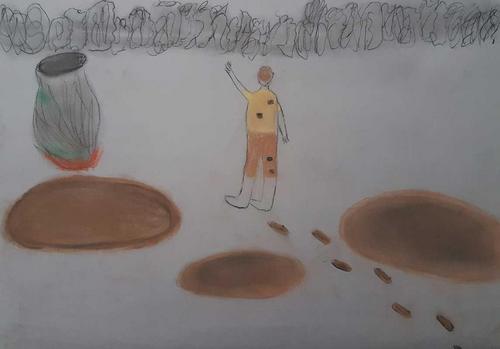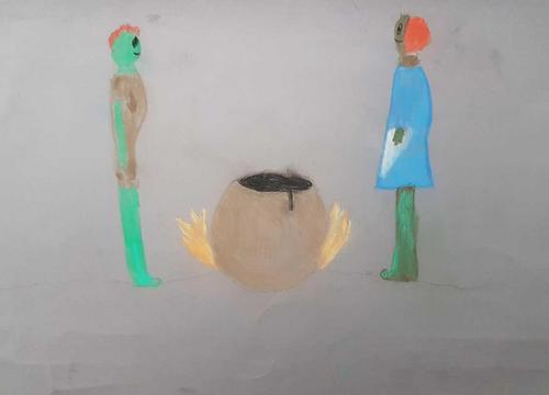 Kuvat ovat Juvolan koululaisten näkemyksiä jättiläisten ilmiasusta.