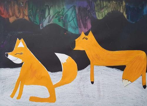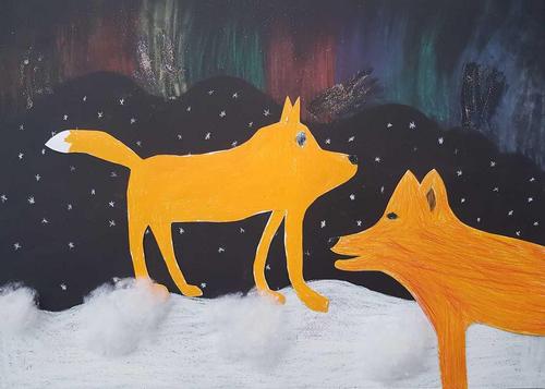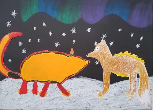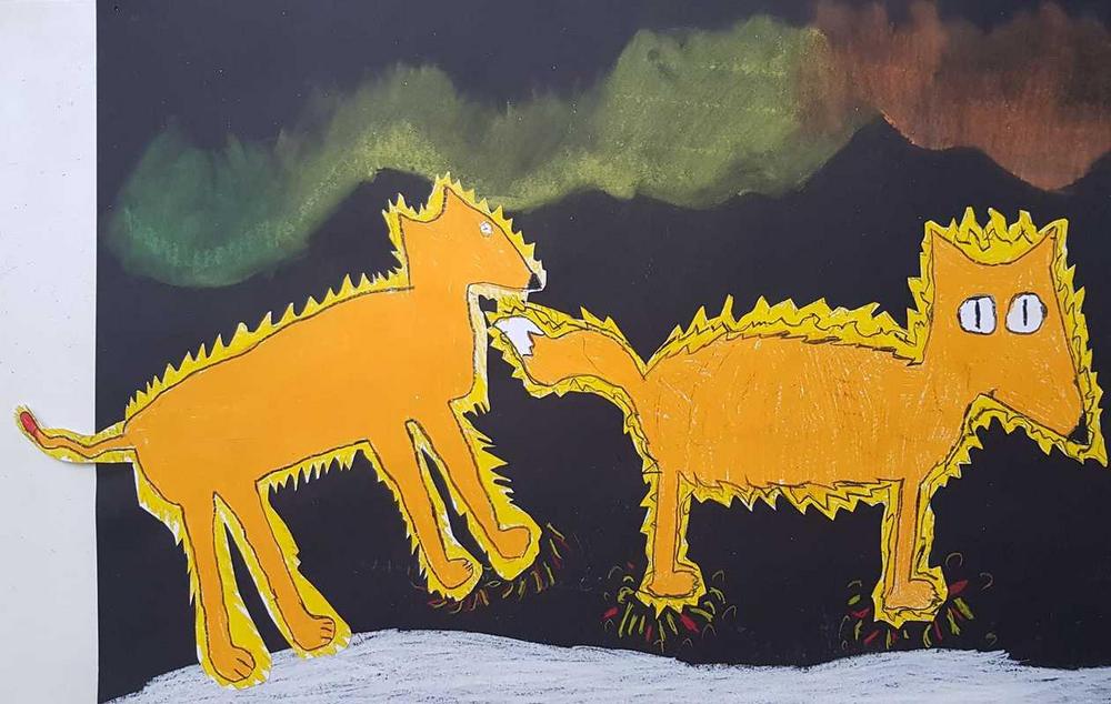 Kuvissa Juvolan koulun taiteellinen näkemys tuliketusta.